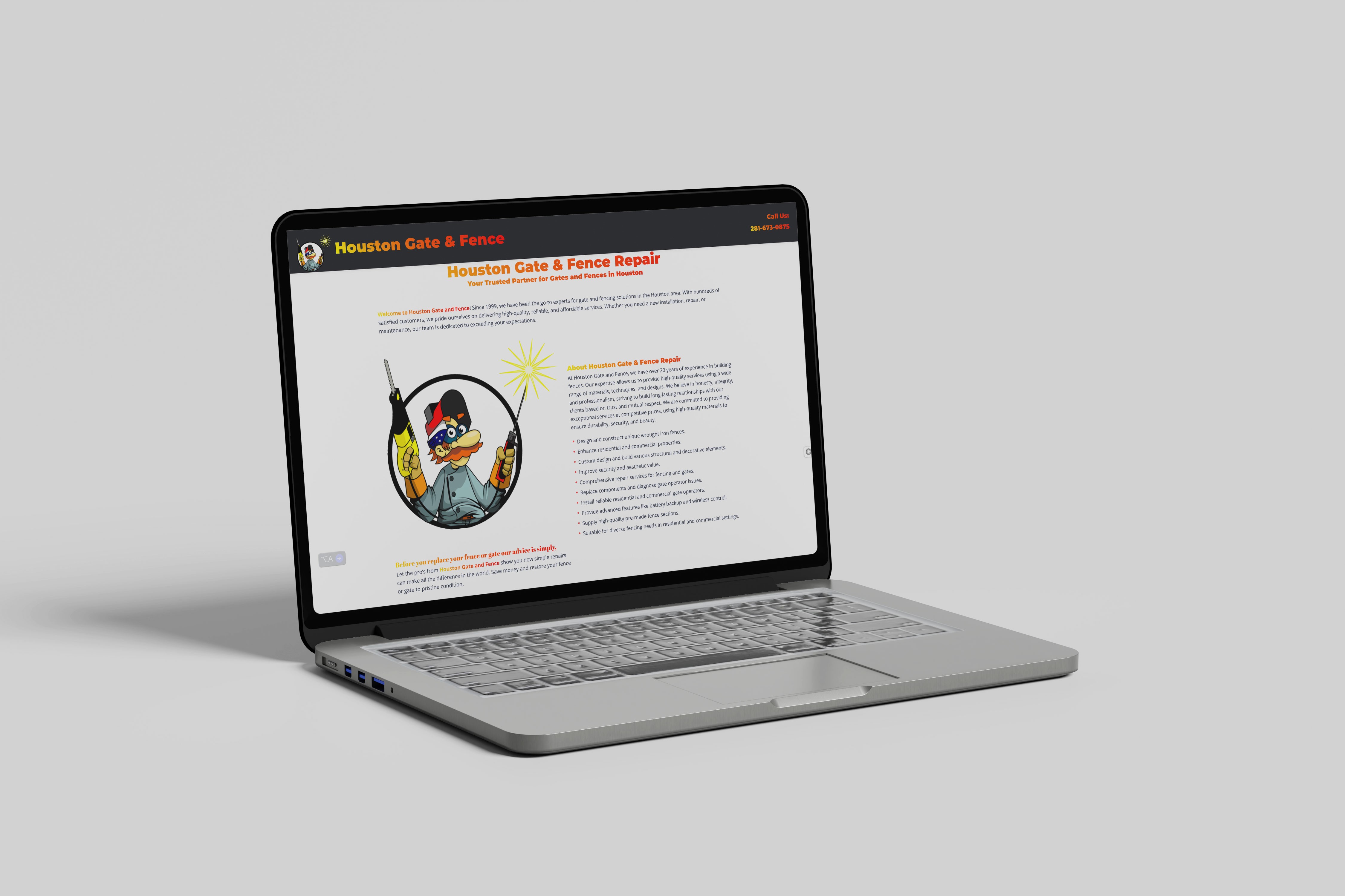 Website Design: Developed a clean, easy-to-navigate website highlighting services such as gate and fence repair, installation, and maintenance.